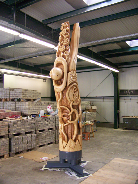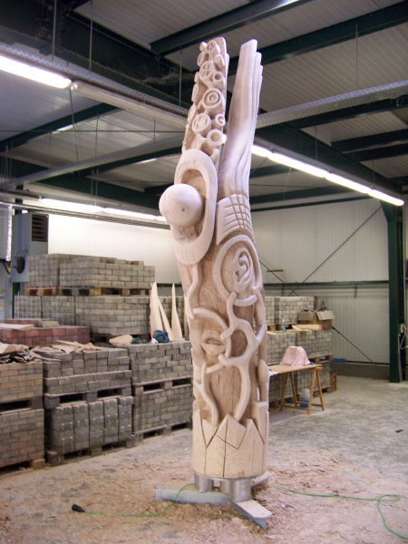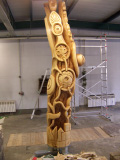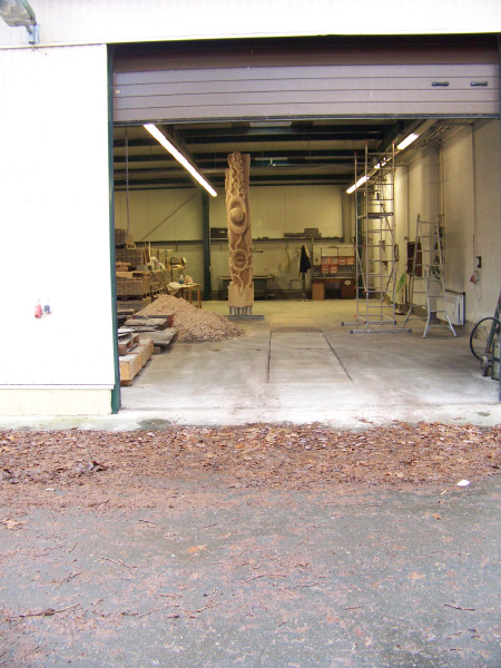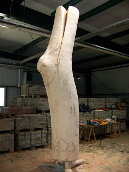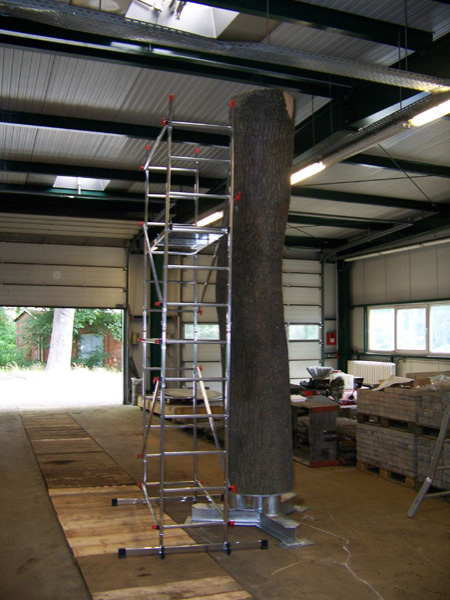 Das Stück für die Skulptur ist ca. 4 Meter lang (hoch, wenn es aufrecht steht) und hat einen Durchmesser von ca. 70 cm.